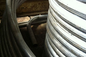 盘管顾名思义是一种呈螺旋状的管道系统。如呈盘状的铝塑管,如呈回字型安装的地暖管盘等等。它广泛用于食品、制药、造船、电力、啤酒、石油、石化、军工等行业的各种结构件、工具和机械零部件。和不锈钢无缝管相比,一般都有较大的抗弯抗扭能力,可以大大减轻结构重量,节约钢材。